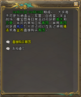 3、大侠也可选择直接在活动大使处消耗精活或者金币直接选购【青团】。