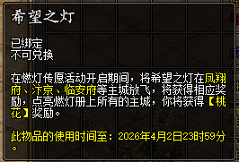 3、大侠可在各大主城右键放飞背包中的【希望之灯】,祭祀先祖获取月度代币【鲜花】的奖励。大侠可以选择免费放飞,也可消耗精活或金币放飞希望之灯,进而获得更多的月度代币【鲜花】奖励。